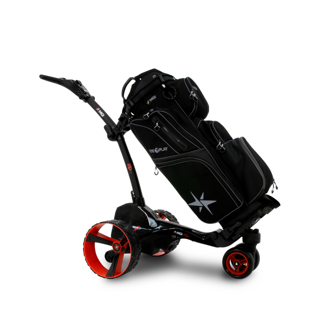 Revolutionize your golf game with the MGI Zip X3 Electric Golf Cart. This sleek and stylish buggy boasts a Controlled Distance Function, swiveling and lockable front wheel, and all-terrain treads for effortless navigation. Powered by advanced digital intelligence, it provides valuable performance insights. Are you ready to take your golf game to the next level?!